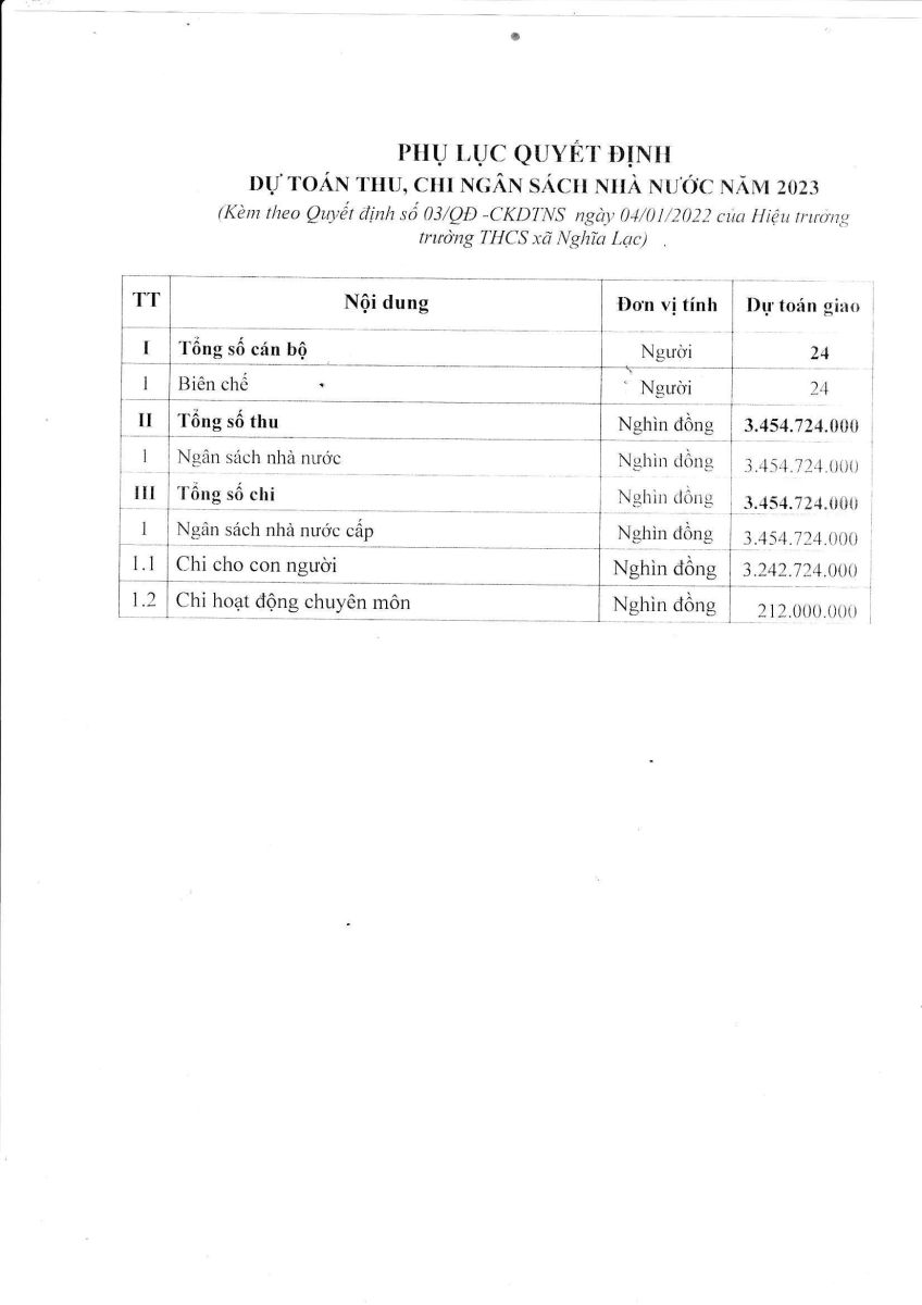 công khai dự toán năm 2023