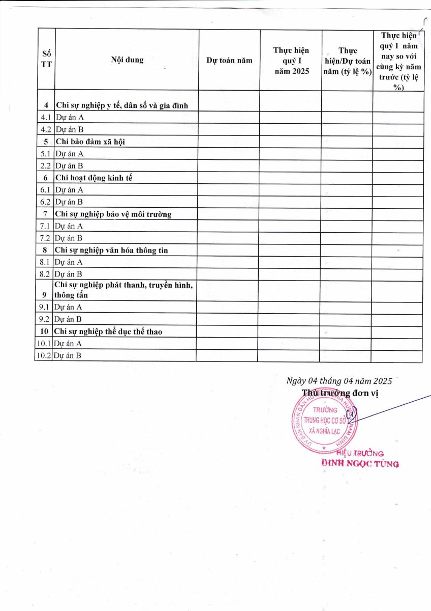 Công khai quý I năm 2025